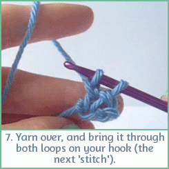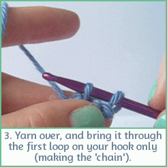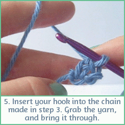 5.在第3步完成的锁针处插入钩针,绕线拉出